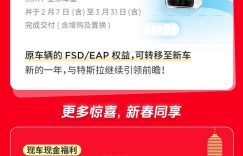 [本站 资讯] 日前特斯拉官方宣布推出新春专属福利,包含FSD/EAP/免费超充限时转移、百万车主…