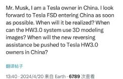 [本站 资讯] 日前,有特斯拉中国车主在社交媒体上向马斯克提问称,“我期待特斯拉FSD(完全自动驾…