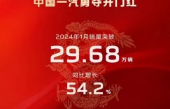 [本站 资讯] 2024年1月,中国一汽集团1月总销量突破29.68万辆、同比增长54.2…