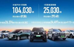 [本站 资讯] 2月7日,我们从长城汽车官方了解到,其1月销售新车104,030辆,同比…
