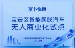 [本站 资讯] 1月31日,百度旗下自动驾驶出行服务平台萝卜快跑获得由深圳宝安区颁发的首批智能网联汽…