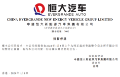 [本站 资讯] 1月8日,恒大汽车在港交所早间公告,公司的股份由2024年1月8日上午九…