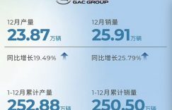 [本站 资讯]日前,广汽集团公布12月及全年销量数据,其中2023年全年累计销量250.5万辆,同比…