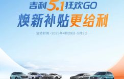 [本站 资讯] 日前,吉利汽车正式推出推五一限时福利,活动时间4月29日-5月5日,购车可享综合补贴至高530…