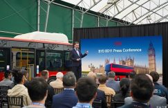 [本站 新车首发]5月21日,比亚迪在英国伦敦发布搭载新一代刀片电池大巴底盘的纯电动双层巴士BD11…