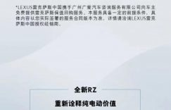 [本站 资讯] 日前,雷克萨斯公布了旗下RZ车型的相关保价政策,可以看到,凭雷克萨斯RZ…