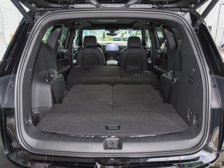 空间表现方面,其打孔真皮座椅为长途乘坐提供充分的支撑性与舒适度;第三排座椅椅背采用加厚设计,厚度14cm。新车采用2+3+2的座椅布局,二排配备25cm超长滑动导轨+三排Easy entry便捷进入功能,为三排乘客出入提供充分便利。座椅翻折灵活多变:二排4/6翻折、三排5/5翻折,二三排可通过座椅一键电动翻折实现快速放倒;全车37处储物空间,7座满员状态时后备厢容积为222L(可放两个大号登机箱),放倒第三排时为883L,二三排均放倒时可达1970L。