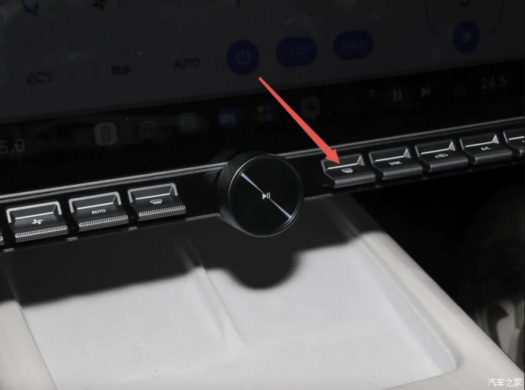 3.如您购买了中控屏物理按键,点击外后视镜/后风挡加热按键,以开启/关闭该功能;
