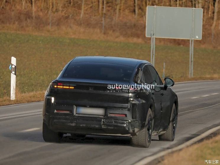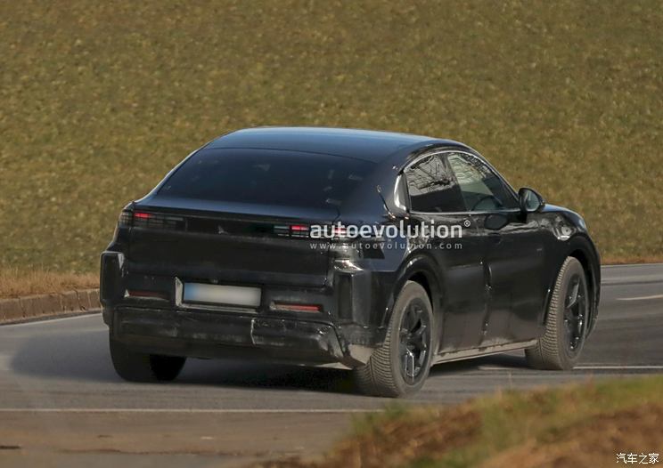 侧面来看,新车拥有轿跑风格的溜背造型,车身线条流畅动感,并且相较燃油版Cayenne Coupé看起来车身更加修长。车尾来看,新车配备了矩阵式的LED尾灯,中间部分似乎有一个传感器设备,车尾下方可以隐约看到导流槽和扩散器的设计。