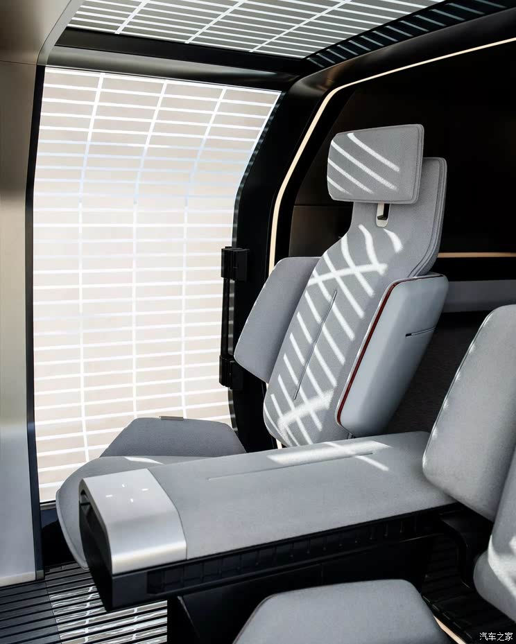 车内来看,新车将采用类似侧滑门的设计,车顶配备天窗,地板采用亮面金属材质。座椅配备了高耸的侧翼设计,还拥有头枕和宽大的中央扶手,不过整体造型比较单薄。车内配备金属装饰,其上印制的经纬度代表了设计工作室的位置。此外,动力方面并没有更多信息。