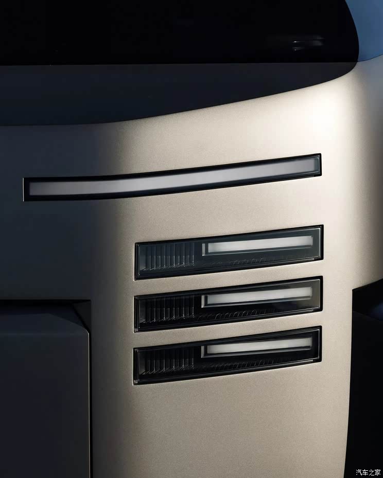 具体来看,新车将采用香槟金色的车漆,车头配备三短一长的平行LED灯带,车尾则将配备三条等长的平行尾灯,并搭配镜面装饰,配合复杂的线条设计,整体风格十分前卫,极具科幻未来感。