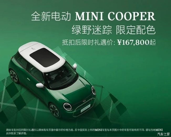 [本站 新车上市] 5月22日,我们从MINI官方了解到,其针对旗下小型车――电动MINI COOPER推出绿野迷踪限定配色,共两款配置,售价分别为16.78万和19.78万,并全国限量52台。关于新车详细售价,见下图: