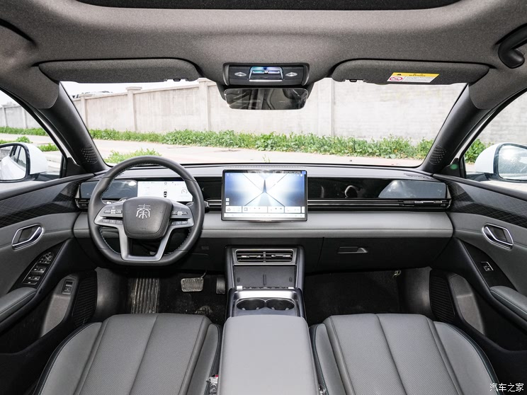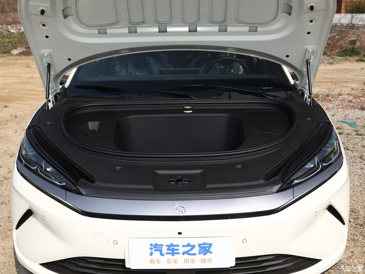 来到车内,秦L EV配备8.8英寸全液晶仪表和15.6英寸中控屏,内置智能座舱高阶版-DiLink 100,支持5G速联以及四音区语音交互系统等。配置方面还提供全景天窗、双温区空调、车载ETC、手机NFC车钥匙、一体式智能冷暖冰箱和W-HUD等。此外,该车还配备前后双备箱,前备箱容积65L,后行李箱容积为460L,下方还有35L下沉式隐藏储物空间。