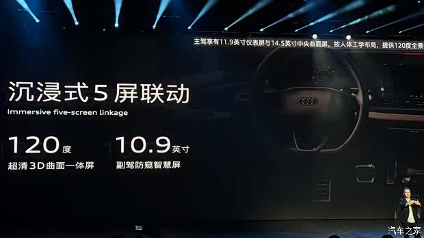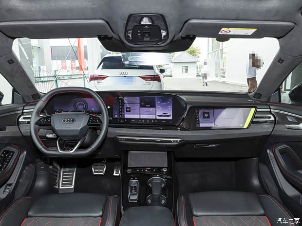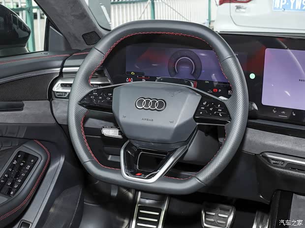 新车配备奥迪全新一代座舱设计布局,采用悬浮式环抱中控以及雾面磨砂设计,并集成左右门把手形成一个扁窄的六边形造型,在视觉上拉伸了横向空间。车辆还将采用11.9英寸液晶仪表+14.5英寸中控屏共同组成的曲面一体屏,同时利用3D曲面弧度让中控屏能更倾斜向主驾驶位。此外,副驾前将配备10.9英寸娱乐屏,轮廓采用平行四边形设计,内嵌在中控台中,造型与整体座舱设计更加契合。此外,车辆全新的运动多功能方向盘除了平顶平底的运动化设计,其在左右两侧功能区采用了新一代的背光触控式设计。