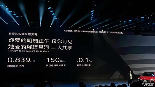 ○ PDLC可调光全景天幕,4种调光模式,150毫秒响应