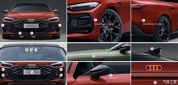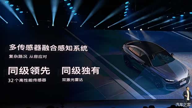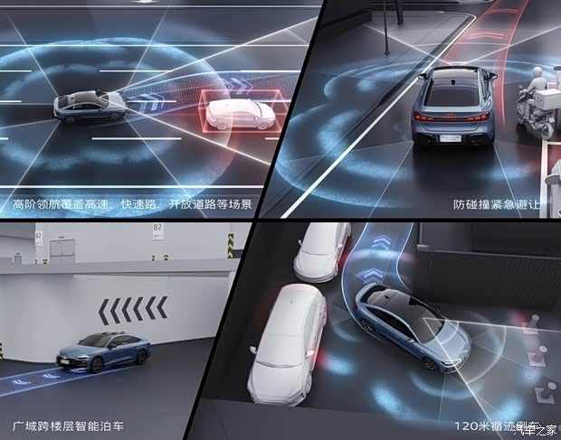 辅助驾驶方面,A5L Sportback的智领型、智领quattro型、旗舰智曜型将搭载华为乾崑智驾系统,采用2颗激光雷达、12个高清摄像头、6个毫米波雷达和12个超声波传感器。车辆也将配备额外支撑这套智驾系统的电源,低功率版本车型将配备0.9kWh电池组,而轻混版本车型由于驱动的需求,将配备1.7kWh电池组。新车的智驾系统将支持高速/城区组合辅助驾驶(NCA)功能,能够实现城区领航的驾驶辅助、复杂匝道汇入驶出、ETC自动通行、交通信号灯识别等功能。同时,车辆还将提供智能泊车辅助(APA)、遥控泊车辅助(RPA)、代客泊车辅助(AVP)、循迹倒车(RA)等功能。