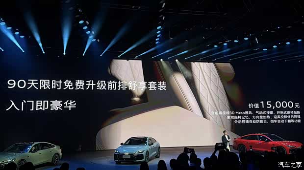 上市后90天内购车的用户,可享多重上市限时礼遇。选购豪华型、尊享quattro型、智领型、智领quattro型的用户,可获4000元限时现金礼遇;除此之外,选购豪华型的用户,可免费升级价值15000元的前排舒享套装,享前排座椅3D Mesh通风、气动式按摩、环抱式座椅加热、主驾座椅记忆、方向盘加热、迎宾投影外后视镜、外后视镜自动防眩目、倒车自动下翻等功能,实现入门即豪华;上汽奥迪还为购车用户准备了价值4000元的驾享无忧礼,内含2年3次奥迪品牌官方养护服务。