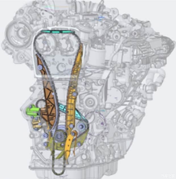 同时,EA888 Evo5发动机的(正时/张紧/平衡轴)链条更窄,减少了摩擦损失;装备的双柱塞张紧器可减少链条与链轮之间的摩擦,提高传动效率,降低冷启动噪音。全新发动机还将拥有电驱动气门正时调节系统,可以支持最大156°的气门正时调节范围,相较于传统液压式调节系统(60°)调节范围更大。通过电机驱动而非传统的液压或机械方式来调节进气门的开启和关闭时间,电驱动系统不受机油压力和发动机转速的限制,调节精度更高、响应更快,可减少发动机启动时的振动。