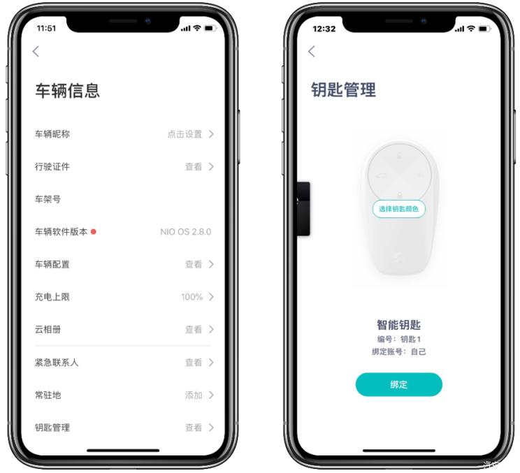 主用车人可以通过NIO App的钥匙管理功能将智能钥匙/NFC卡片钥匙等设备与共同用车人或授权用车人的账户绑定。完成绑定后,持不同设备解锁上车即可直接加载对应账户,与账户相关联的一系列设定(如座椅记忆、地址收藏等)也将自动同步。