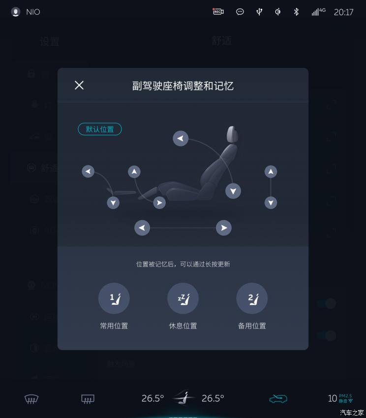 新增中控屏调整副驾驶座椅及语音一键复位