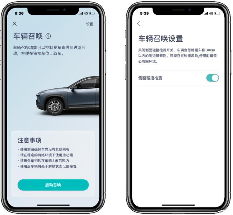 在车辆与周围障碍物距离不小于约30cm的情况下,可通过NIO App控制车辆沿车身方向直线前进和后退一段距离(如车辆前轮未回正则会先尝试自动回正)。值得一提的是,该功能不同于特斯拉的智能召唤,只能遥控车辆前进后退,车辆自己并不具备寻找车主的能力。