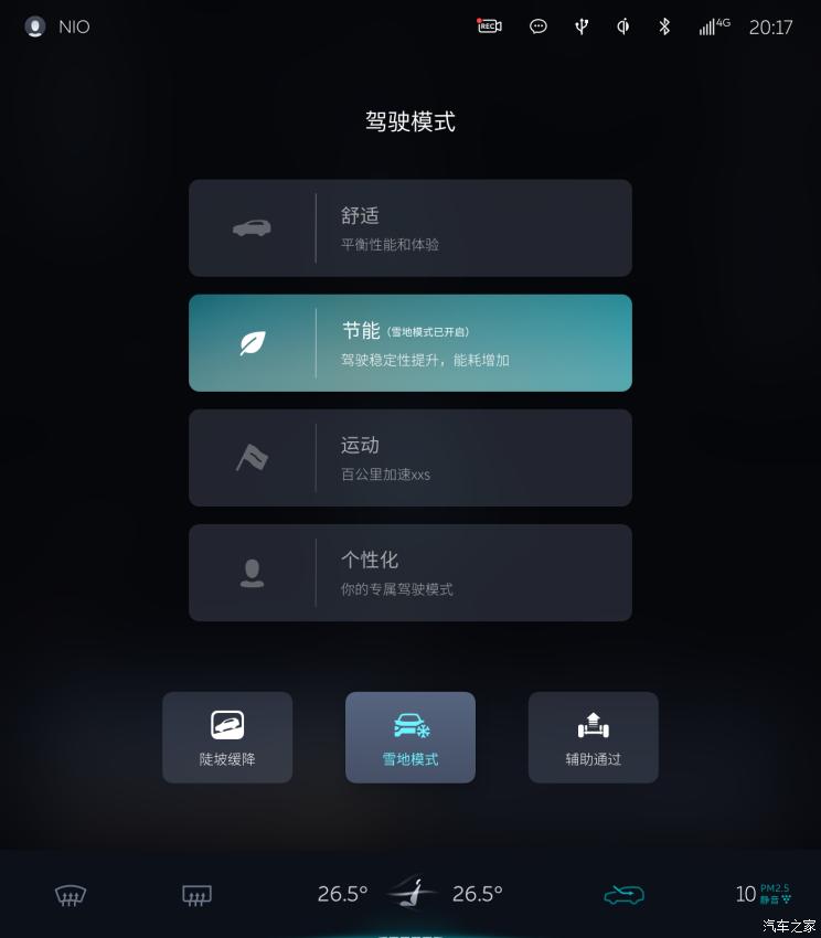 个性化驾驶模式下,百公里加速设置新增9.9秒可选;现在可在驾驶模式切换实体按键菜单中,开启/关闭雪地模式、陡坡缓降及辅助通过功能;离车时若未手动关闭雪地模式,则下一次上车时雪地模式将继续保持开启。
