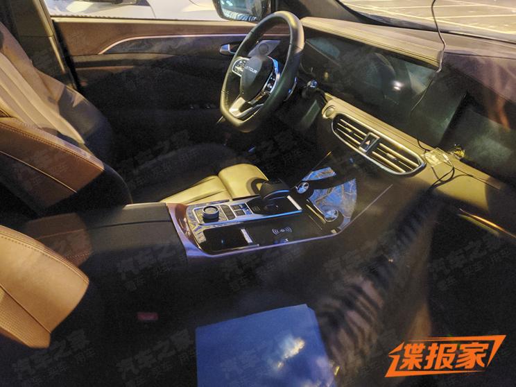新车在内饰部分仍采用双连屏的布局特征。另外,电子挡把改为类似“奥迪”款的短小式造型,其右方还设置了无线充电装置。