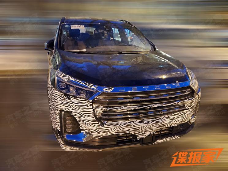 从谍照上看,新车在外观方面经过些许调整。其中前格栅改为了横幅式设计,“JETOUR”的英文标识位置也移到了车头上方。前保险杠两侧的LED日间行车灯排列样式也有了更新。其下方还搭配了类似于毫米波雷达的装置。