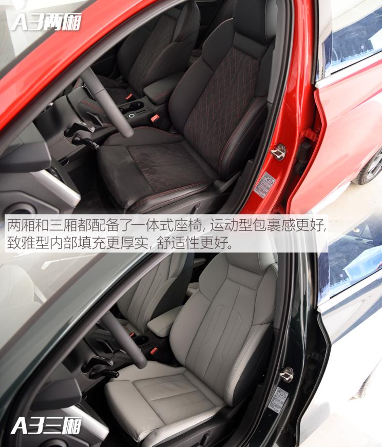 通过我们实测来看,身高182cm的体验者将前排座椅调至最低,两厢版车型的头部空间剩余四指/三厢版车型头部空间剩余三指。前排座椅保持不变的前提下,两厢版后排拥有两指的头部空间;三厢版拥有四指的腿部空间,整体空间表现一般。值得一提的是,全新A3两厢版乘坐空间的表现在我们意料之内,毕竟轴距没有变化,对它也没有太高的要求。而全新A3三厢的表现则是满足了我们的期待,加长的轴距带来了立竿见影的效果,后排表现已经可以和主打大空间的轩逸、朗逸平起平坐了。