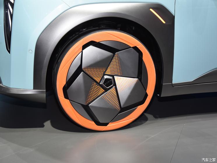 细节上,新车采用矩形轮眉边框搭配双色五星型轮圈,样式比较出挑,此外,充电口被设计到了前翼子板处,隐藏式门把手和车侧的橙色装饰也点缀的恰到好处。车尾部分的设计可能没有车头那么抢眼,不过和头灯呼应的尾灯依然让人眼前一亮,内部灯带的设计也和整体设计风格搭配的比较和谐。
