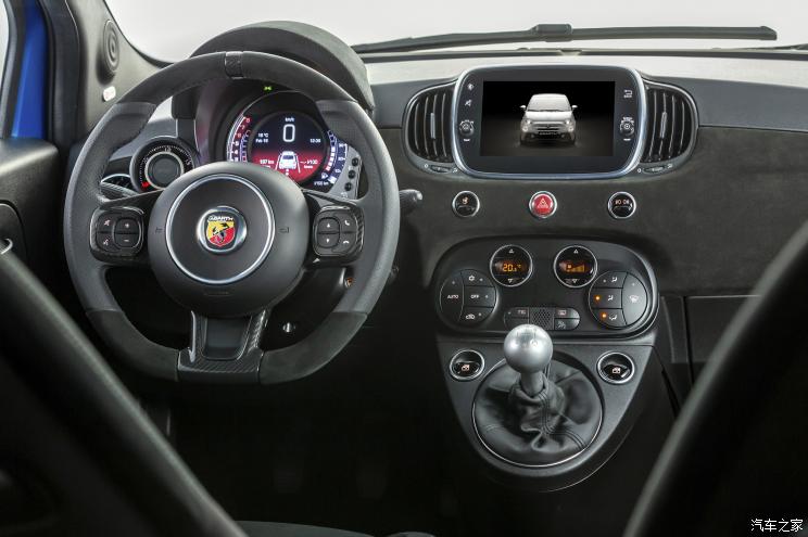 相比于外观,新车在内饰方面的改变比较明显。此前中控台上的“Sport”运动模式按键上的单词被替换成了Abarth代表性的蝎子图案,仪表盘左边的涡轮压力表式样更新成了黑底白针。针对Competizione车型,中控台新增了Alcantara材质的包覆以及碳纤维的挡把;针对Turismo车型,新增了带有菱形缝线的棕色真皮座椅。同时所有车型均可选装由BeatsAudio提供的7扬声器音响系统,别看扬声器数量不多,但瞬时最大输出功率达到480瓦,对于一辆小型车来说可以算得上奢侈了。