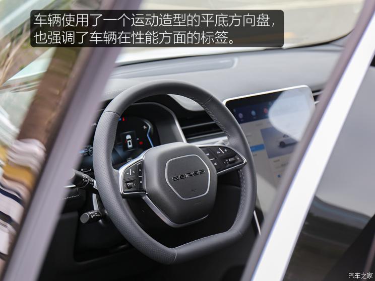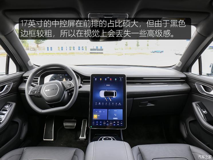 在内饰的设计上,车辆使用了一块硕大的中控屏幕,也是车辆前排视觉上最核心的元素,并同时以此取代传统的物理按键,所有的车辆功能设置全部融合到了屏幕内。