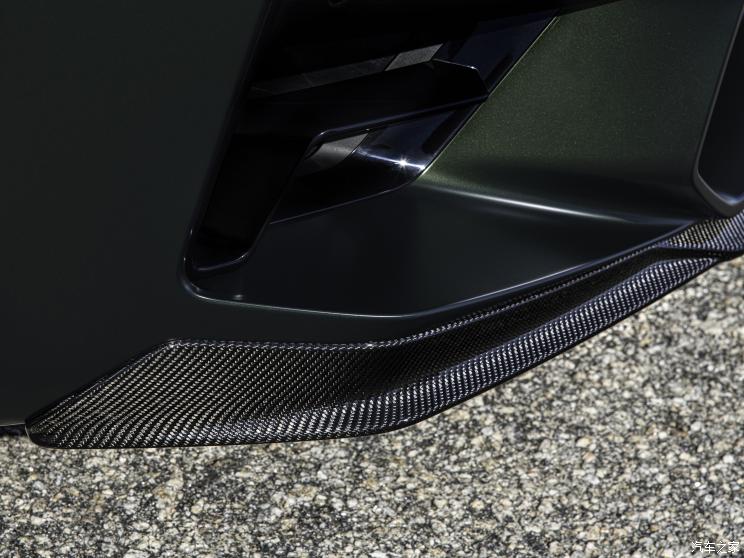车身侧面来看,前后凸起的轮眉线条搭配车身腰线,让该车看上去力量感十足。同时,新车在前轮眉后方配有导流孔,并在内部加入哑光香槟金镀铬饰条进行点缀,视觉效果突出。此外,该车还配备了红色刹车卡钳以及碳陶刹车盘,彰显该车极致性能。