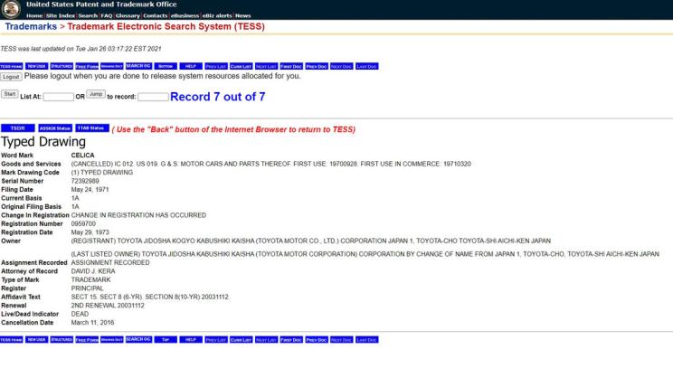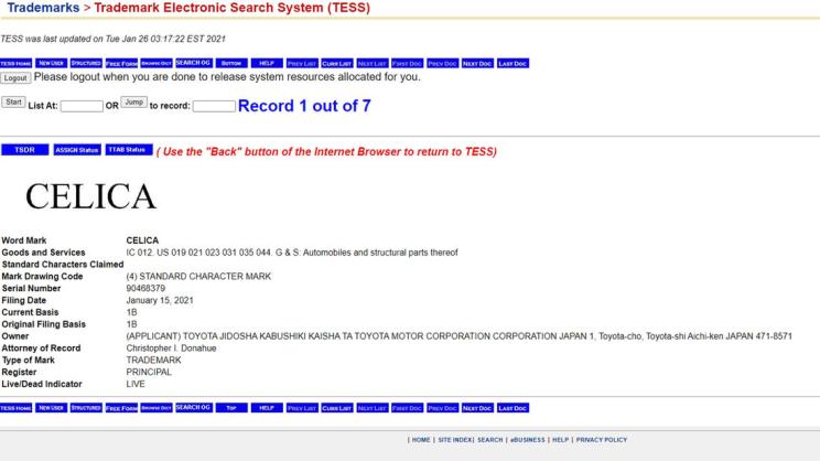 这么来看,好像丰田品牌的转变是Celica名称复兴的必然结果。但其实更多的现象表明,这可能只是丰田对自己旗下车型名称的一种保护手段,为了使其他车企不会冒名使用,而在不停的去注册申请商标的使用权。
