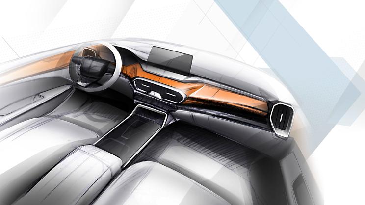 可以看出,炫界Pro的内饰设计与早前曝光的外观草图相呼应,国风设计元素贯穿始终,构建出内外合一的整体设计感。新车内饰采用简洁清晰的布局方式,搭配黑橙的青春撞色,整个车内空间舒展而又不失悦动。