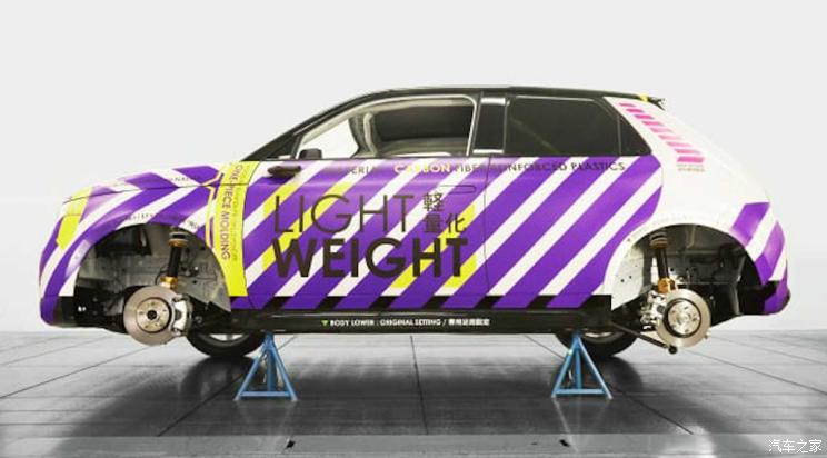 在外观方面,本田e-Drag整车采用白、紫、黄三色的条纹进行涂装,并且在车头以及车侧还印有“�X量化LIGHT WEIGHT”的字样装饰,看上去颇具街头性能车的范儿。此外,该车还大量采用碳纤维增强聚合物来加固车身组件,其中车顶就使用这种材料打造而来。