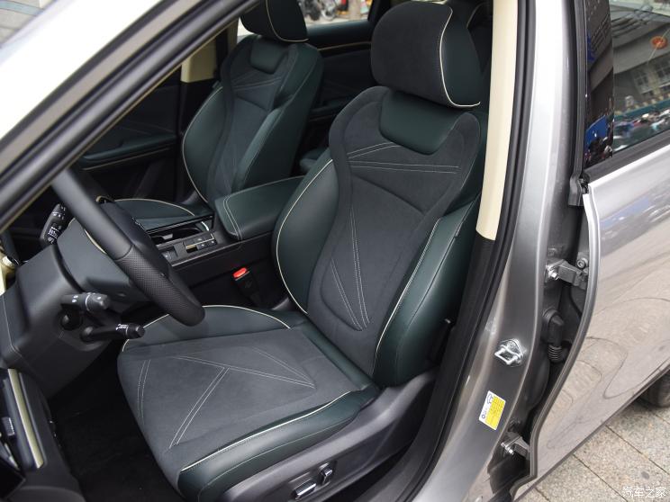 内饰方面,新车采用了环抱式驾舱设计并将中控设计的偏向于主驾驶侧,配合中控台简洁的线条,让其整体极具层次感。细节方面,新车整体采用了黑色+墨绿色的搭配,并在车门把手、方向盘、中控按键以及挡把处加入浅金色进行点缀,视觉效果十分奇妙。