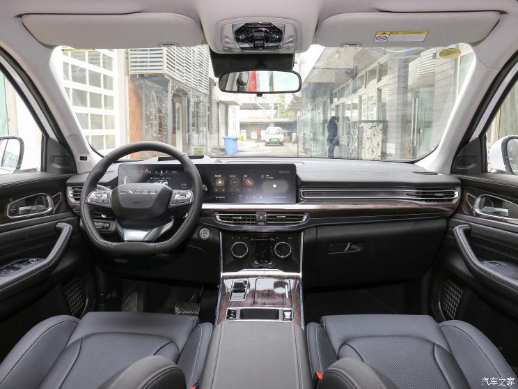 星途揽月的内饰采用了较为简约的设计风格,大量采用横向的线条进行装饰。车内采用了时下流行的全液晶仪表+中控屏联屏的设计,两块屏幕尺寸均为12.3英寸。空调面板大面积功能为触控操作,温度调节为旋钮设计,变速箱挡把为电子拨杆设计,很有科技感。车内还拥有三区空调,前排座椅加热通风等设计,提升了乘坐的舒适性。