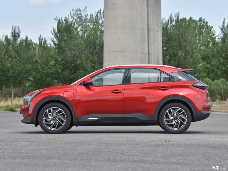 在车侧,首先新车给我们的第一感觉就是前后悬较短,轴距应该比较可观。虽然目前官方未公布2021款哪吒U Pro的车身数据,但参考2020款车型,其长宽高分别为4530/1860/1628mm,轴距已达到2770mm,与同级别车型相比,轴距是优势。另外从造型方面来说,新车腰线硬朗,车侧不会给人一种臃肿的感觉,反之是年轻感、动感十足。