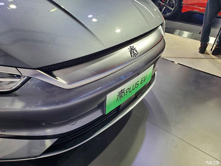 前脸的下半部分采用了与汉EV高度相似的内凹折线设计,使前脸造型中的型面变化更加丰富。而在细节上,延伸至两侧通风口区域的黑色装饰条是秦PLUS EV独有的设计,也进一步拓展了车辆的视觉宽度。