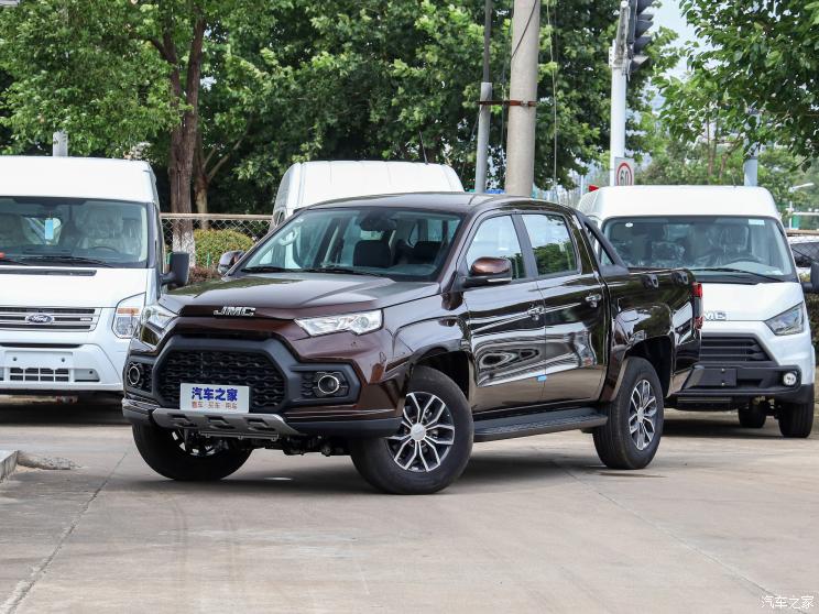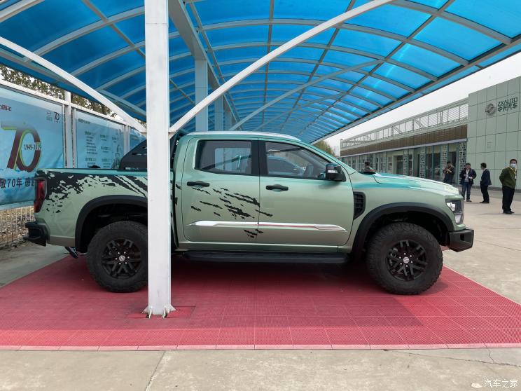 从外观方面来看,新车整体造型与传统皮卡差别并不大。从车头设计来看,较为宽厚硬朗,前脸采用大尺寸圆角矩形式前格栅,内部则为黑色密条幅式饰条进行点缀,搭配两侧宽大的灯组以及平行四边形的日间行车灯。