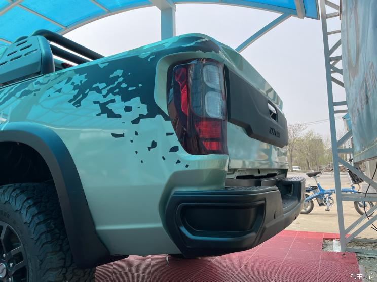 尾部方面,造型十分方正,以此凸显其狂野皮卡的定位,尾部左右两侧尾灯采用竖状式,这样可在夜晚点亮后辨识度更高。新车侧踏板处加入不规则的钢板,看起来十分霸气。