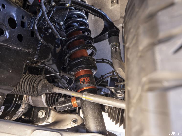 与前代车型一样,宽大的黑色塑料轮眉勾勒出宽体的样式,搭配大尺寸的越野轮胎和深色轮圈,具有很强的视觉冲击力。车尾部分,C字形的LED尾灯组与头灯呼应,后货舱门上依旧是贯穿的“FORD”字样装饰。