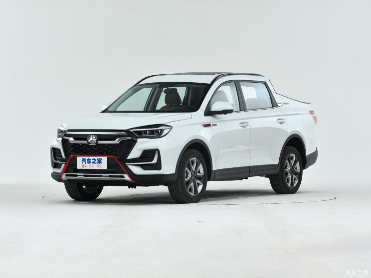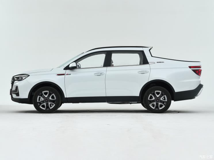 车身侧面,新车采用双排车身设计,前半部分造型与SUV车型结构十分接近,而尾部的后货箱则定义了其皮卡的身份。车身尺寸方面,新车长宽高分别为5015/1870/1732mm,轴距2800mm。