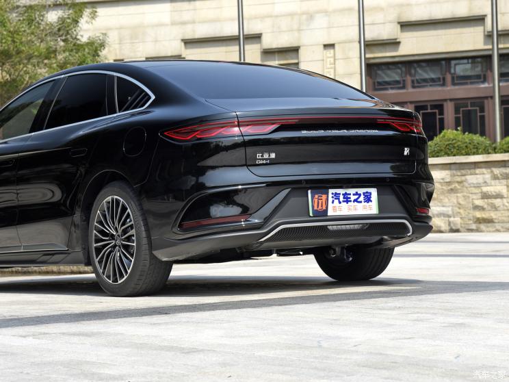 车尾部分,2022款汉DM系列尾灯设计结合中国传统的中国结元素,细节再次得到强化,中国结设计是王朝家族首次采用。尾部钢琴黑套件与前脸设计相呼应,后唇的空气扩散器增加整车运动性。