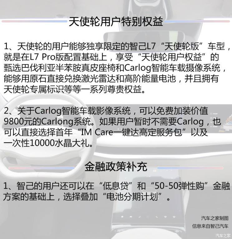 官方表示,A轮用户将免费使用3年IM AD可进化智能驾驶辅助系统,并可在3年后,选择以8800元的价格买断,或用相应价值的数据权益“原石”兑换,终身享用;还可以用“数据权益原石+现金”的方式升级激光雷达系统,以及更高性能电池系统。值得一提的是,此次官方还宣布天使轮用户可选择Carlog智能车载摄像系统,或首年“IM Care 一键达高定服务包”及一次性10000水晶礼。