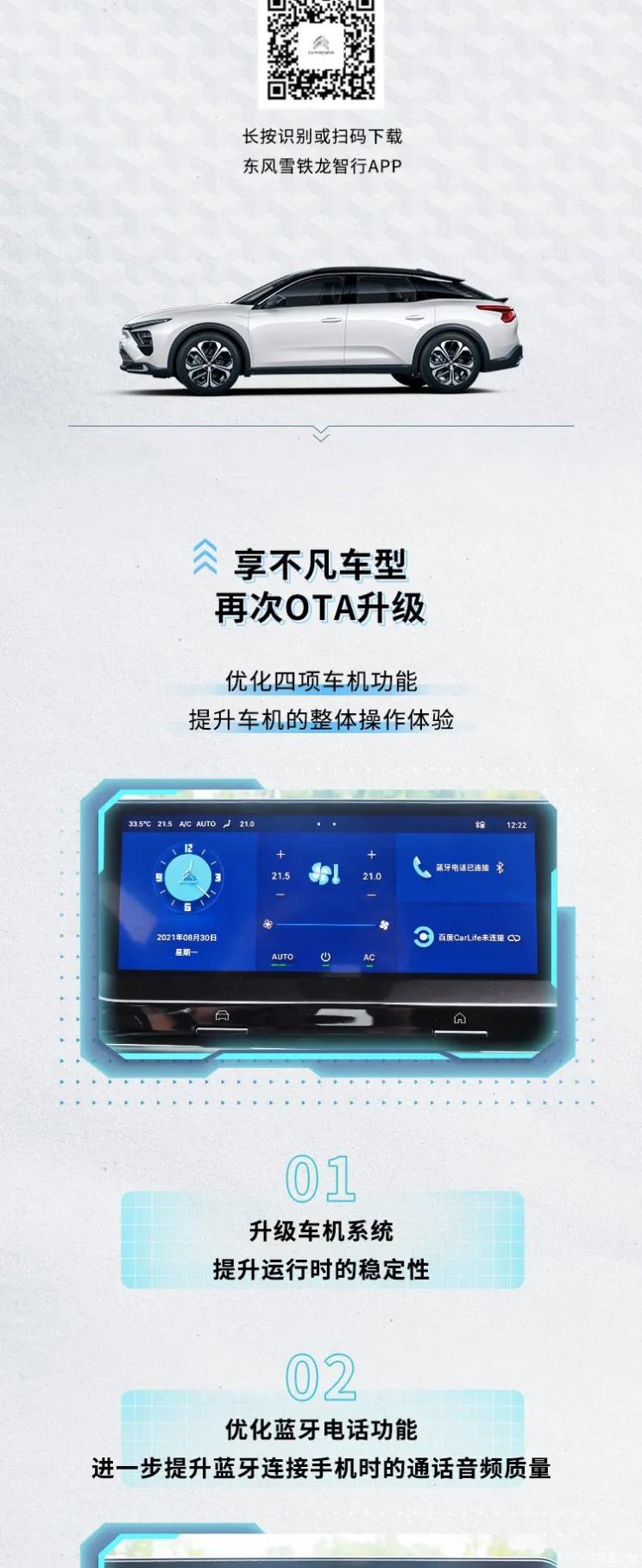 通过上图我们能够看到,享不凡车型将优化四项车机功能,从而提升车机整体操作体验,势不凡、领不凡、耀不凡车型本次升级主要围绕高效、稳定、快捷展开,具体为优化车机系统、优化并提升CarPlay无线链接的稳定性、提升酷我音乐/喜马拉雅音频分享平台等在线应用稳定性、以及优化智能语音功能。值得一提的是,凡在2022年3月31日前激活C-Connect 3.0智能网联系统(4G版)并完成智能天线OTA升级的用户,可获赠凡尔赛C5 X春季限量礼包,享受原增值服务权益有效期延长3个月(包含在线音乐90天、在线广播90天)。