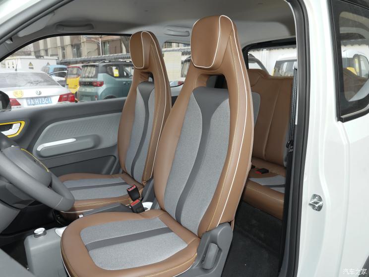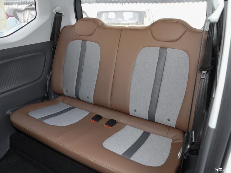 车辆座椅采用一体式头枕设计,座椅也同样采用双色的设计,由于空间的限制,座椅相对较为单薄,只适合短途的驾驶与乘坐。后备厢尾门是半开式,在后排座椅不放倒的情况下,可以放下一些普通书包,在后排座椅靠背放倒之后,可以满足更大的储物空间需求。