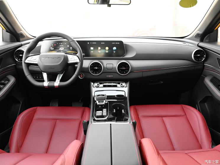 内饰方面,东风风行T5 EVO热浪版采用了黑红搭配的运动风格色调,造型经典的T字型中控台层次感较好,液晶仪表盘与中控屏幕的双联设计在经过圆角处理之后有一定的精致感,圆形的出风口呼应了整车运动的属性。新车的按键和旋钮区位于变速器排挡附近,并使用了独立的钢琴烤漆面。