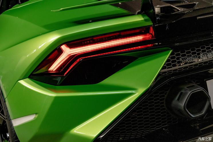 车尾部分,较为明显的是新车换装了一个全新的后发动机舱盖,这是由一块玻璃与轻质碳纤维制成,同时在机舱盖上设计了新的散热开口,能够更好的将机舱中的热量带出。新车还还原了Gallardo车型断崖式的后窗玻璃设计,而双边共两出的排气尾嘴也采用了六边形样式,让品牌的经典元素全部一一展现。